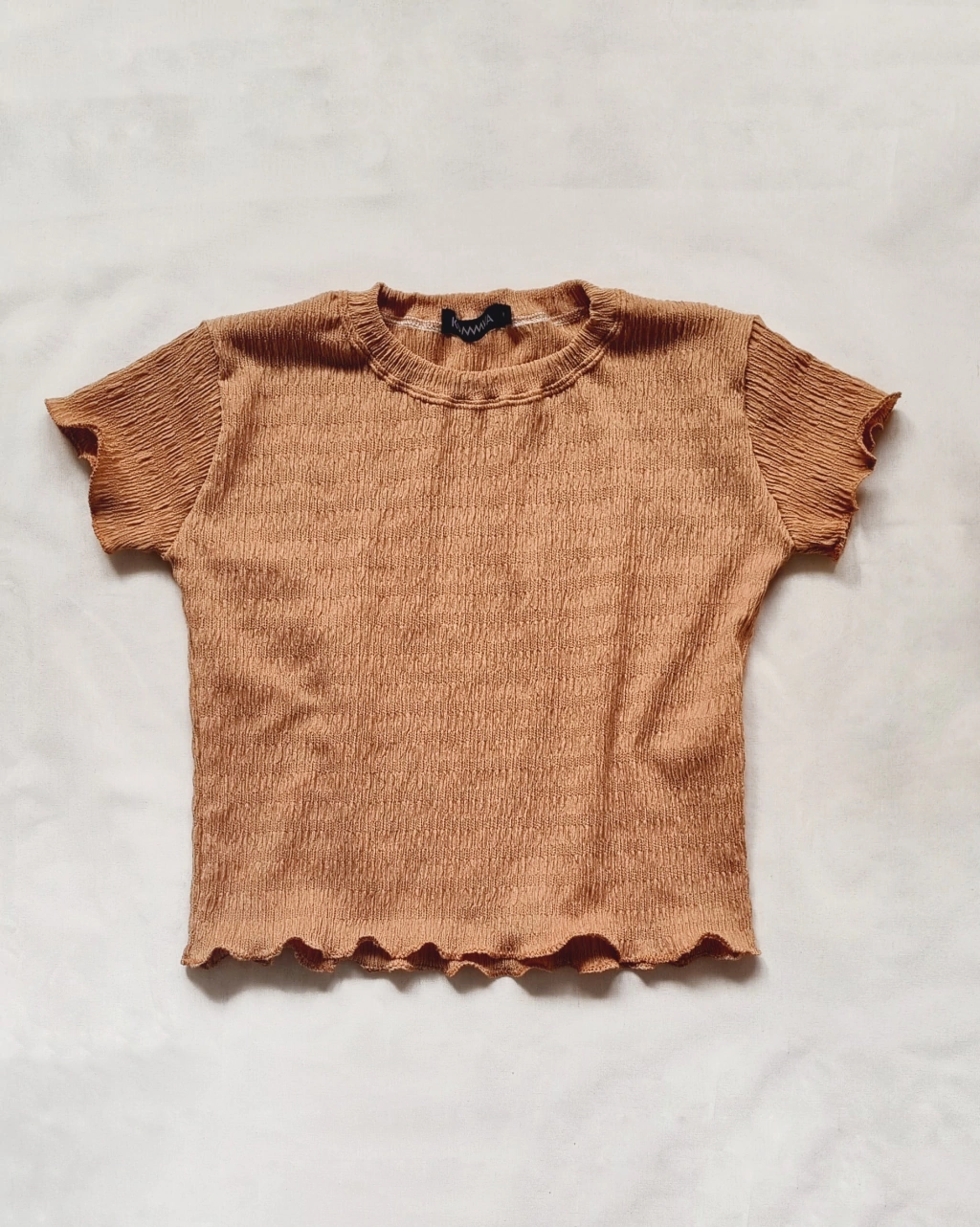 Crop (remera corta) hecho de bambula con spandex-Esta bambula es un tejido con textura acanalada e irregular que tiene spandex en su composición lo que la hace perfecta para este crop adherente pero cómodo-